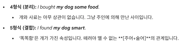 이렇듯 A와 B가 각각 대상이므로 내용이 다를 수 밖에 없는 4형식, 그리고 A라는 대상을 보충 설명해주는 목적격 보어로 B가 위치했다면 A와 B는 의미 상 주어와 서술어 관계를 지니므로, 해당 부분만 고려하면 3형식부터 5형식까지 문장을 판별할 수 있다.