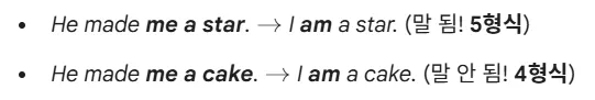 이때 4형식이라면 A에 B를 집어넣는다는 개념으로, 5형식이라면 A가 B로 상태가 변화하는다는 개념으로 이해하면 된다.