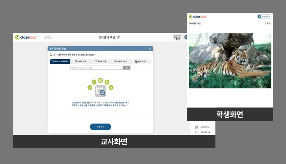 이때 선생님은 클래스를 생성하고 수업을 만들어 바로 학생들을 참여시켜 수업을 언제든 진행할 수 있다. 선생님이 여러 반 수업을 진행하는 게 일반적인 교육 환경이므로 선생님 아이디로 여러 개의 클래스를 개설해서 반별로 별도의 수업으로 관리할 수 있다.