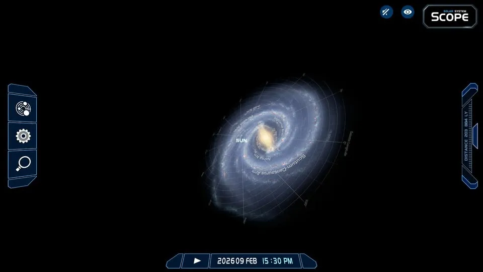 솔라 시스템 스코프는 수성부터 해왕성까지 실시간 태양계 시뮬레이션을 제공하는데, 이때 실제 궤도와 위치를 실시간으로 보여준다.