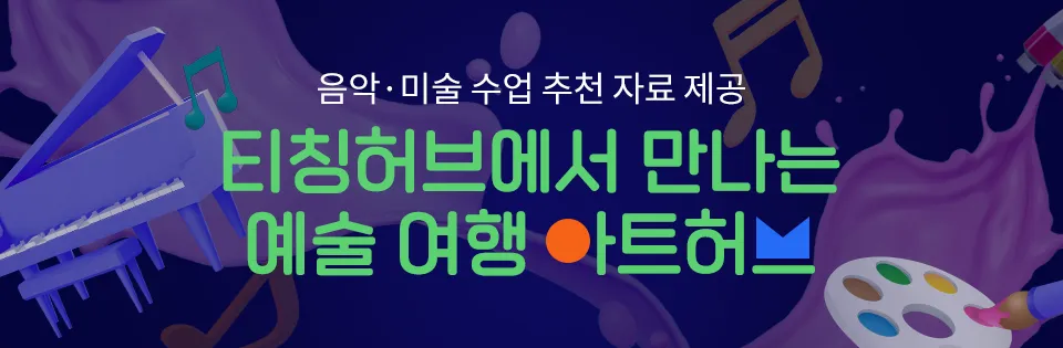 즉, 티칭허브에 접속하면 음악 및 미술을 감상할 수 있는 온라인 전시회를 이용할 수 있는데, 작품을 감상하면서 음악을 듣거나 주제별로 나뉜 작품을 활용해서 수업 시 자유롭게 사용할 수 있다.